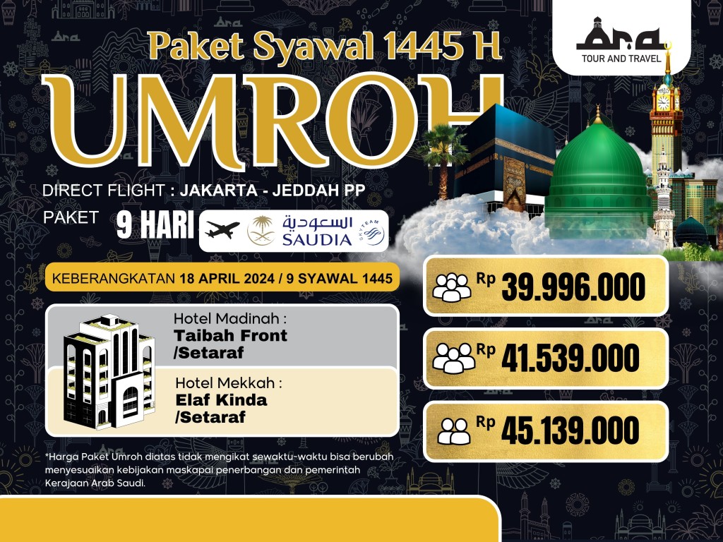 UMROH SYAWAL 9 HARI CGK SAUDI 15 APRIL 2024