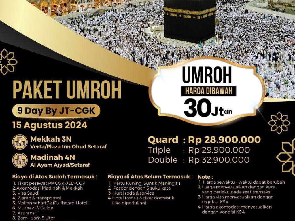 PAKET UMROH 9D BY JT CGK TGL 15 AGUSTUS 2024