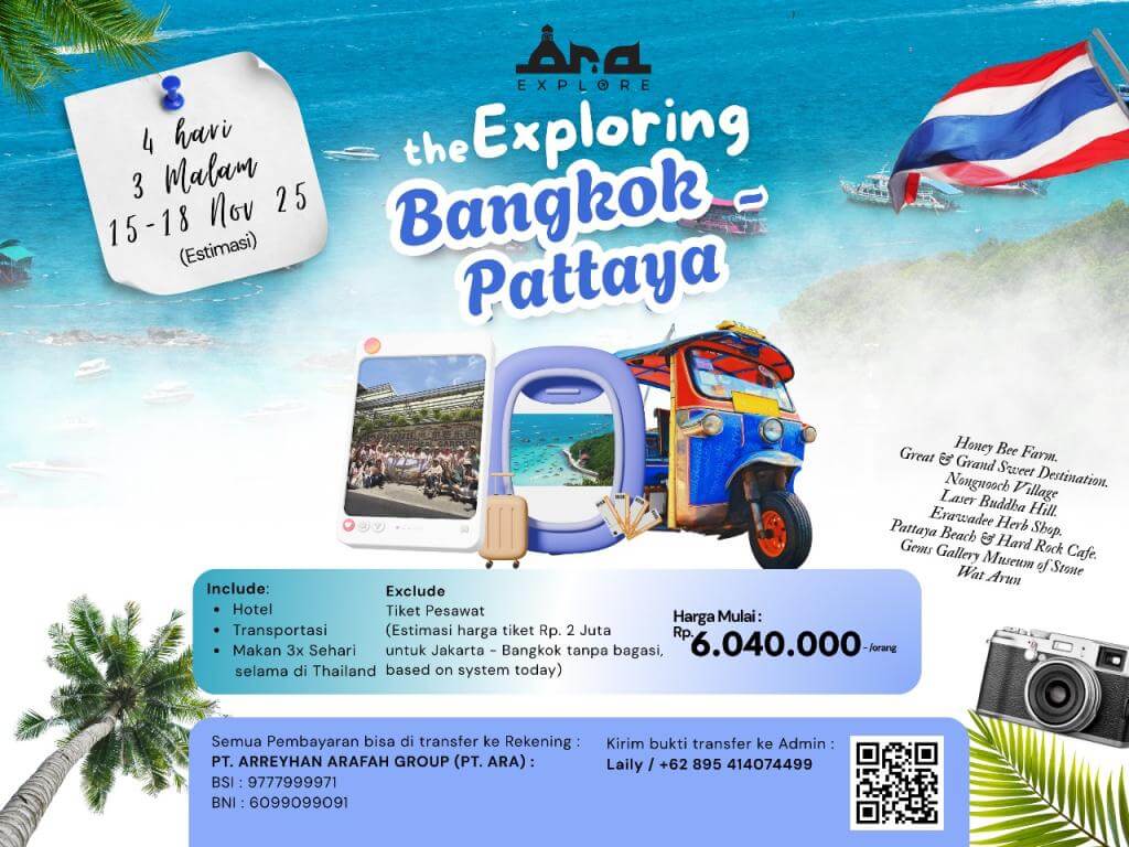 • Include: Hotel, transportasi, dan makan 3x Sehari selama di Thailand